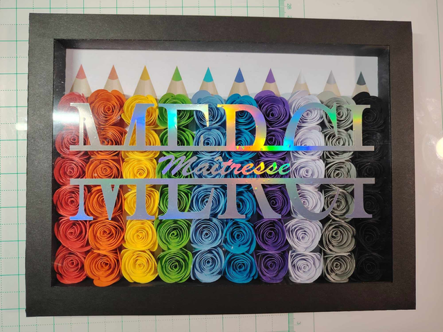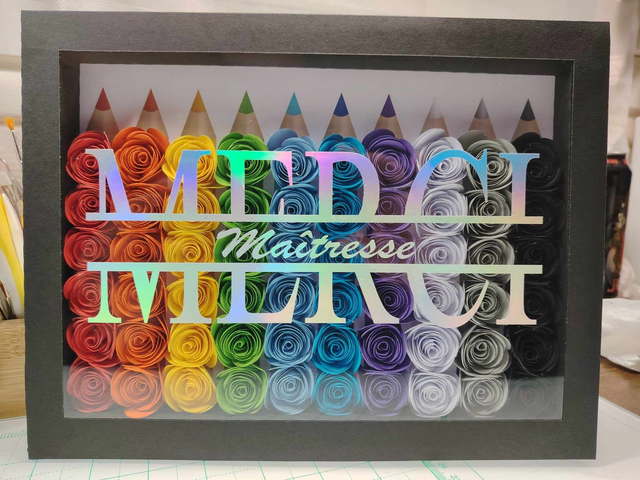 Cadre entièrement fais main. Il mesure 27,5 x 21 cm . Il est personnalisable avec la dénomination que vous souhaitez: maîtresse, ATSEM...