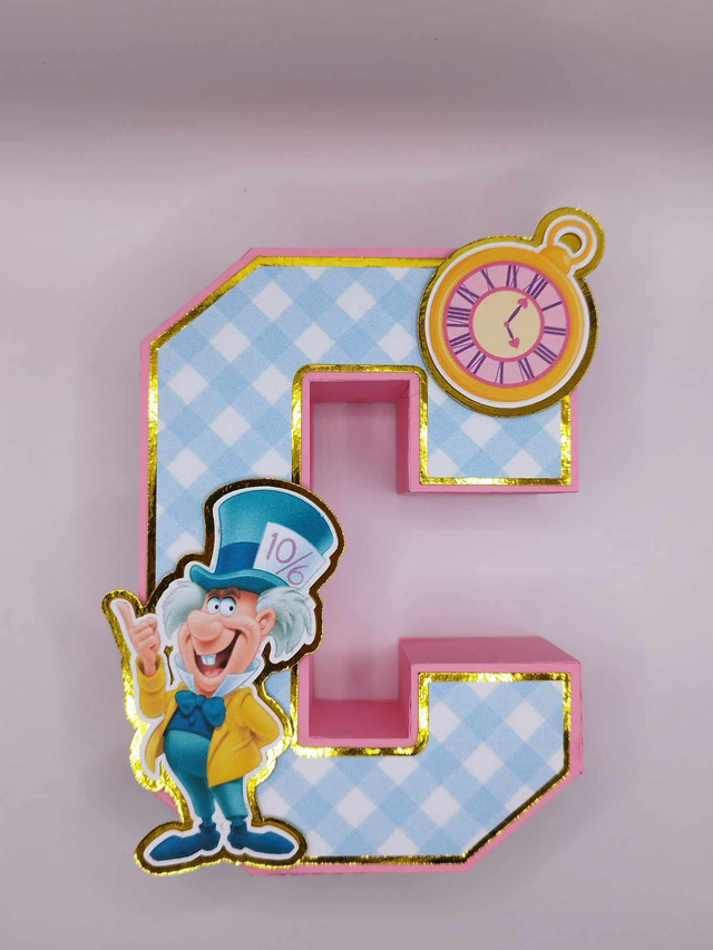 Lettre initiale 3D thème "Alice" (fond bleu)