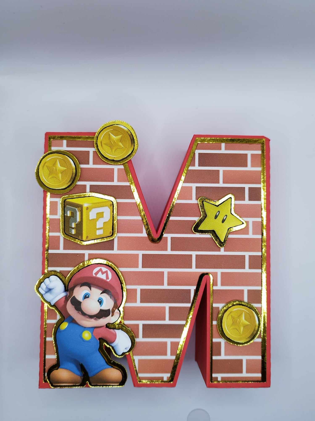Lettre initiale 3D thème "Mario Bros" (mur+Mario)